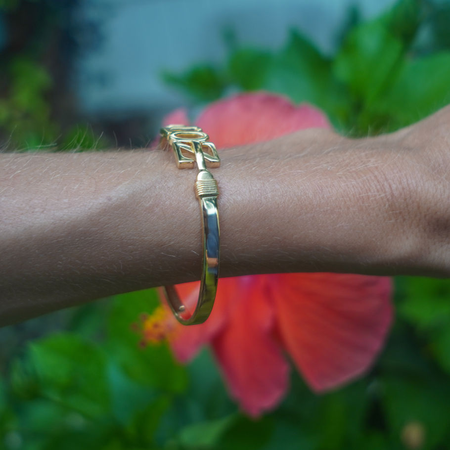The OG LOZ Hook Bracelet in 18k Gold plating over top quality Sterling Silver! Our plating method uses 10x thicker plating than your average gold plated jewelry does. We take this extra step & cost to ensure our pieces can withstand the test of time out in the sun & the sea!